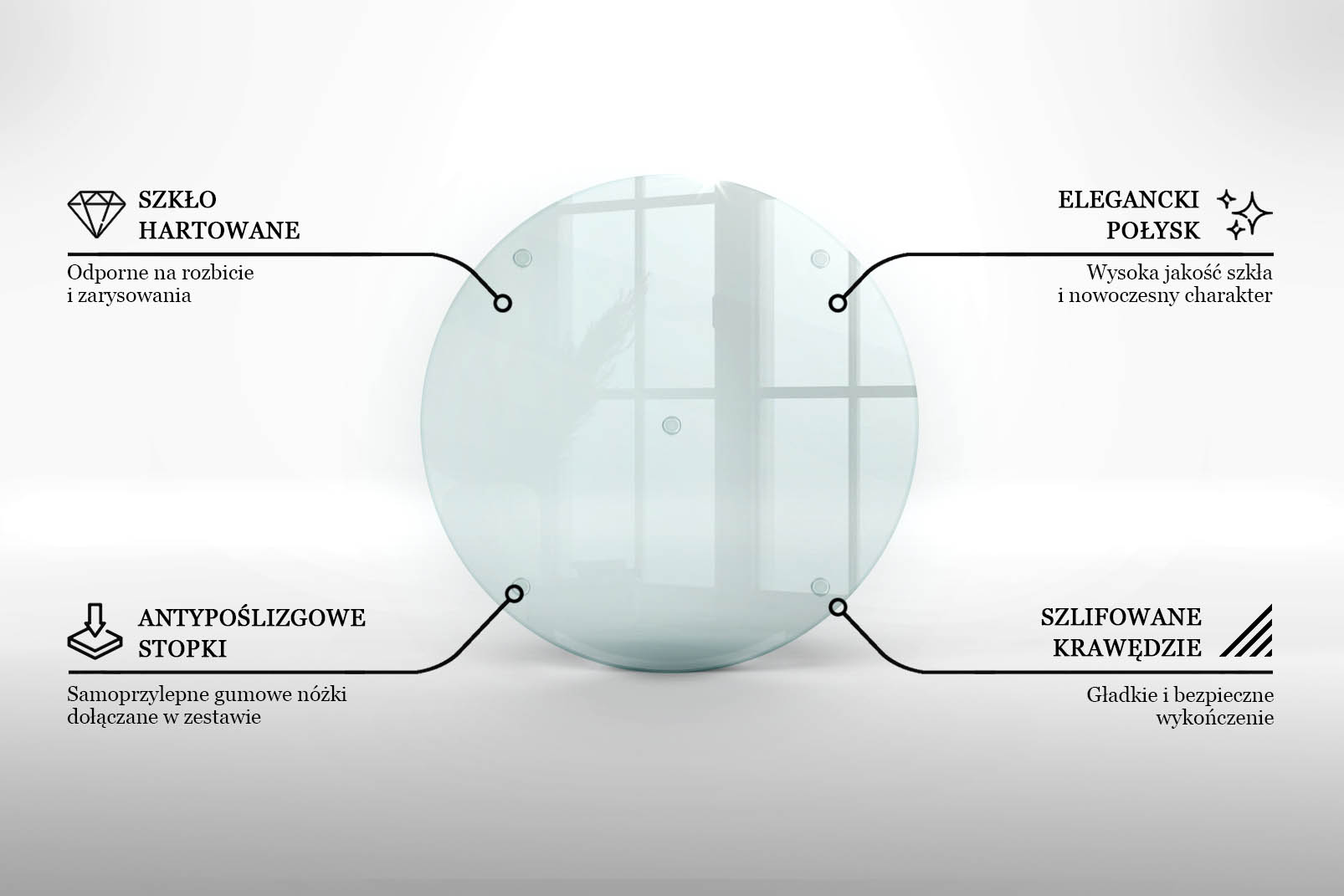 • Wykonana z wytrzymałego, hartowanego szkła