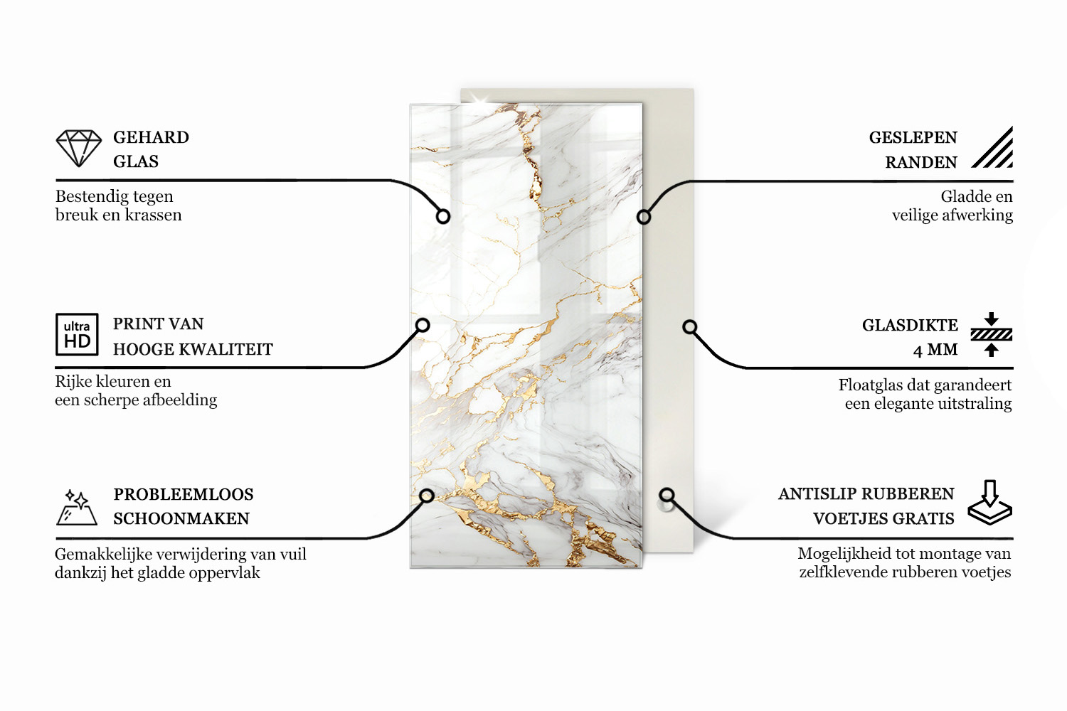 Ben je op zoek naar een praktisch én mooi gehard glas tafelblad voor buiten? Dit Rechthoekig tafelblad met het motief Marmeraders in het ontwerp past perfect als vierkant tafelblad of langwerpig blad op je bestaande onderstel. Met meerdere beschikbare afmetingen – van 50x50 cm tot 140x70 cm – stel je jouw ideale tafelblad buiten samen, of het nu gaat om een compact balkon of een ruime veranda.