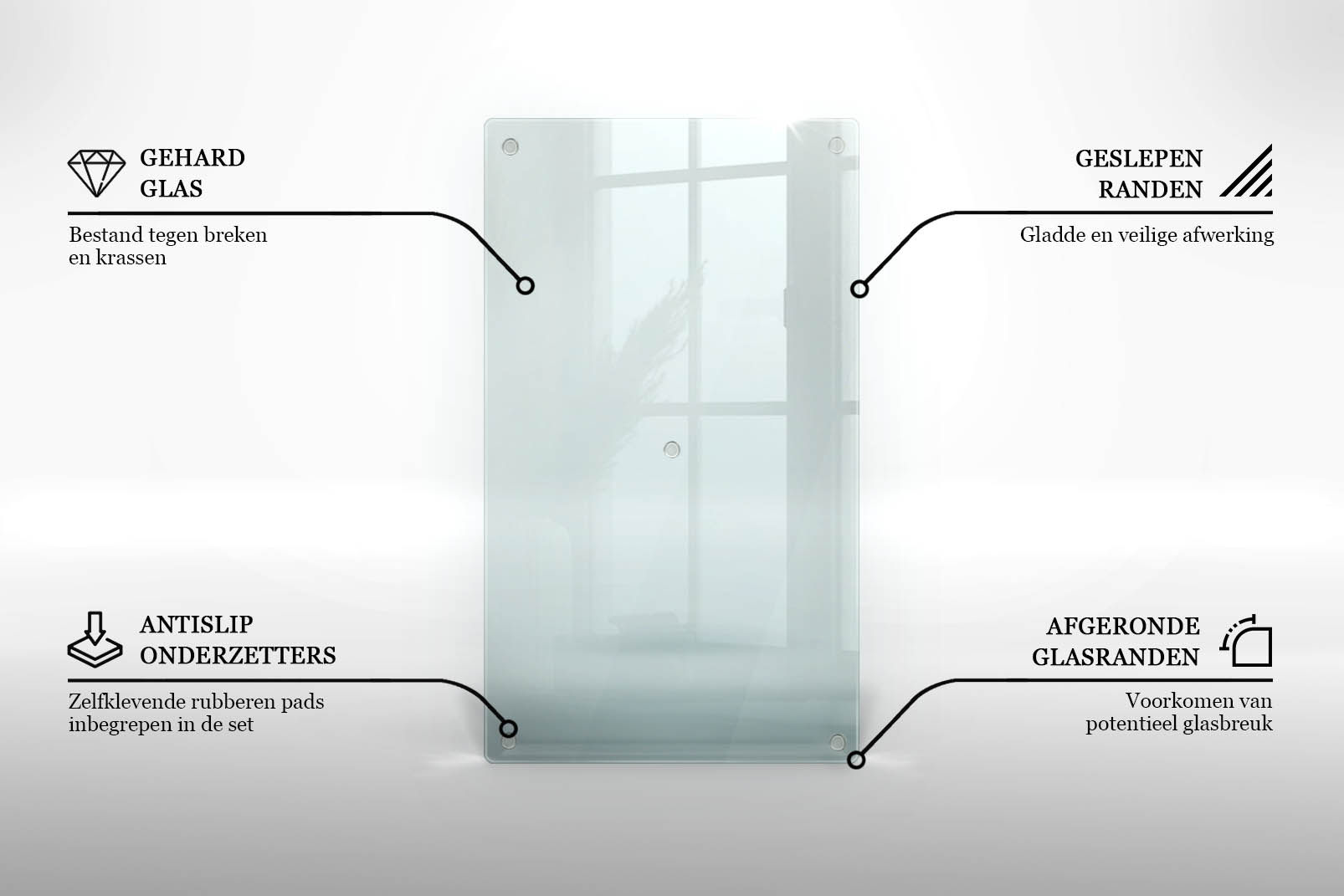 De geslepen randen geven de glasplaat een nette en subtiele afwerking, zodat een grafkaars onderzetter niet alleen praktisch, maar ook esthetisch mooi is. De hoge lichtdoorlatendheid van het geharde glas benadrukt het zachte schijnsel van de kaars en maakt het eerbetoon nog persoonlijker. Bovendien is de glasplaat eenvoudig te reinigen, zodat de plek van herinnering altijd verzorgd blijft.
